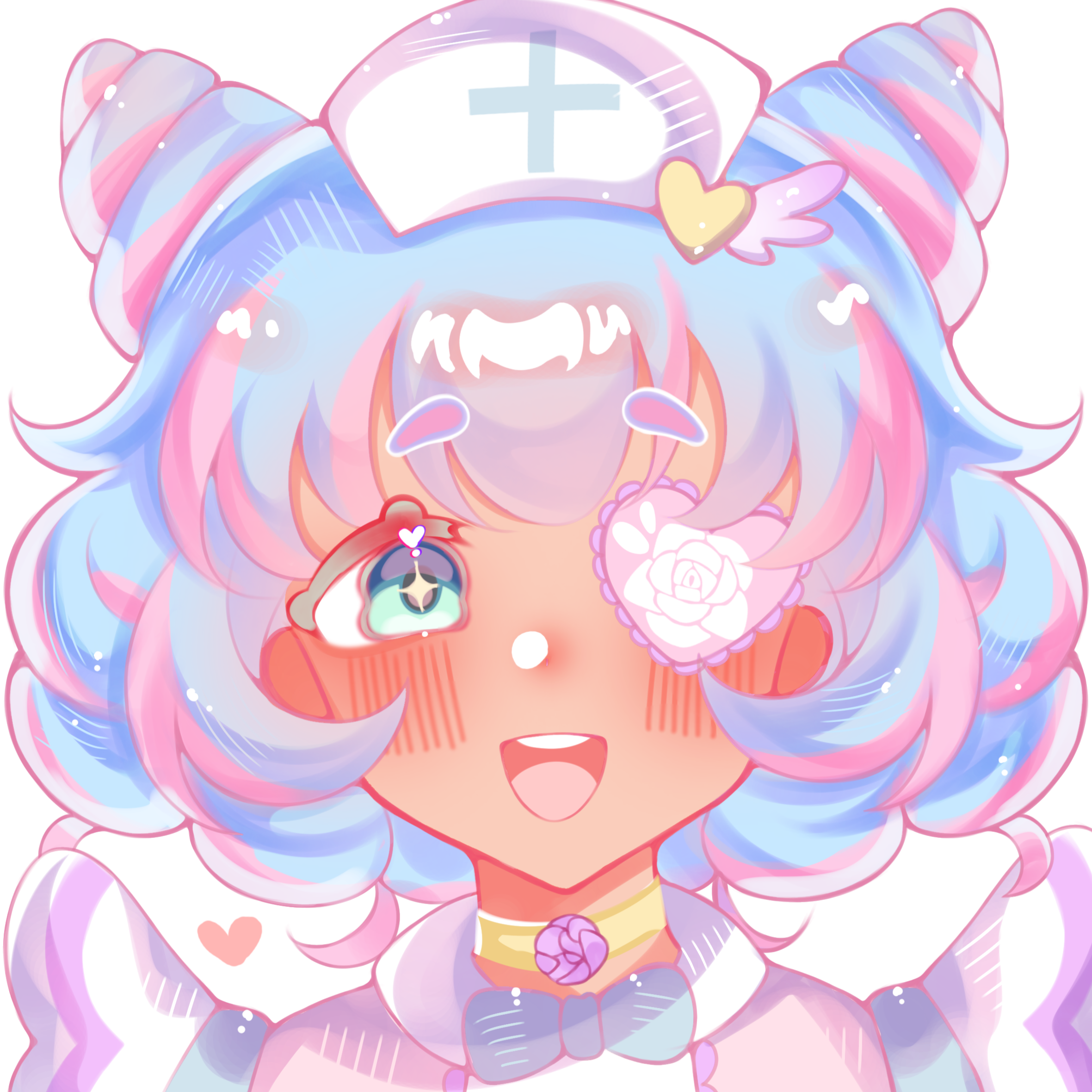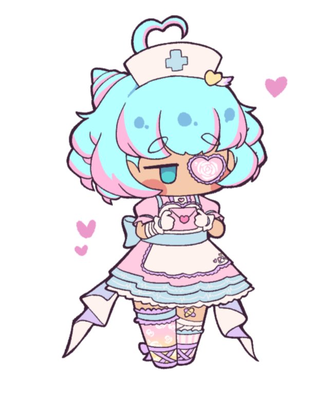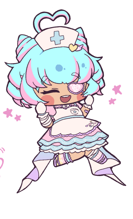 Halo! Lucina Rose reporting for your daily check up~! I am V-Moe's angelic nurse maid, hoping to steal your heart! Oh- the eye patch? Well don't you worry your silly little head about that! I've got nothing to hide Huhuhu...My dream is to reach the hearts of as many patients as I can. Spreading love is my true desire so stop by and let me entrance you with my angel magic!